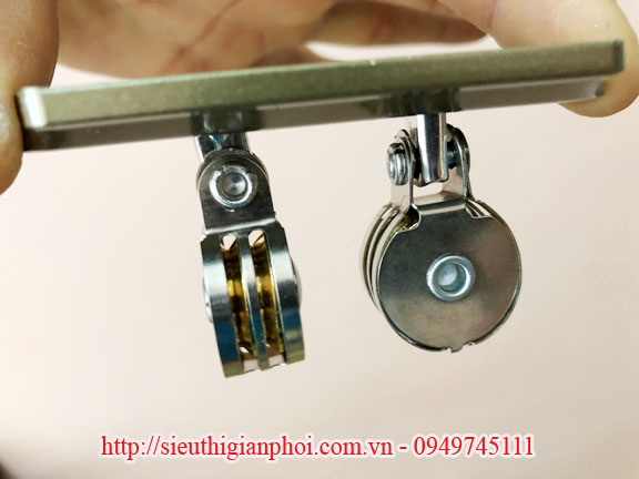 - puli được cấu tạo bằng thép không gỉ, bánh xe tiếp xúc với dây cáp bằng đồng không bị oxi hóa theo thời gian, thiết kế vòng bi tạo cho bộ giàn phơi vận hành nhẹ nhàng và bền bỉ hơn rất nhiều.